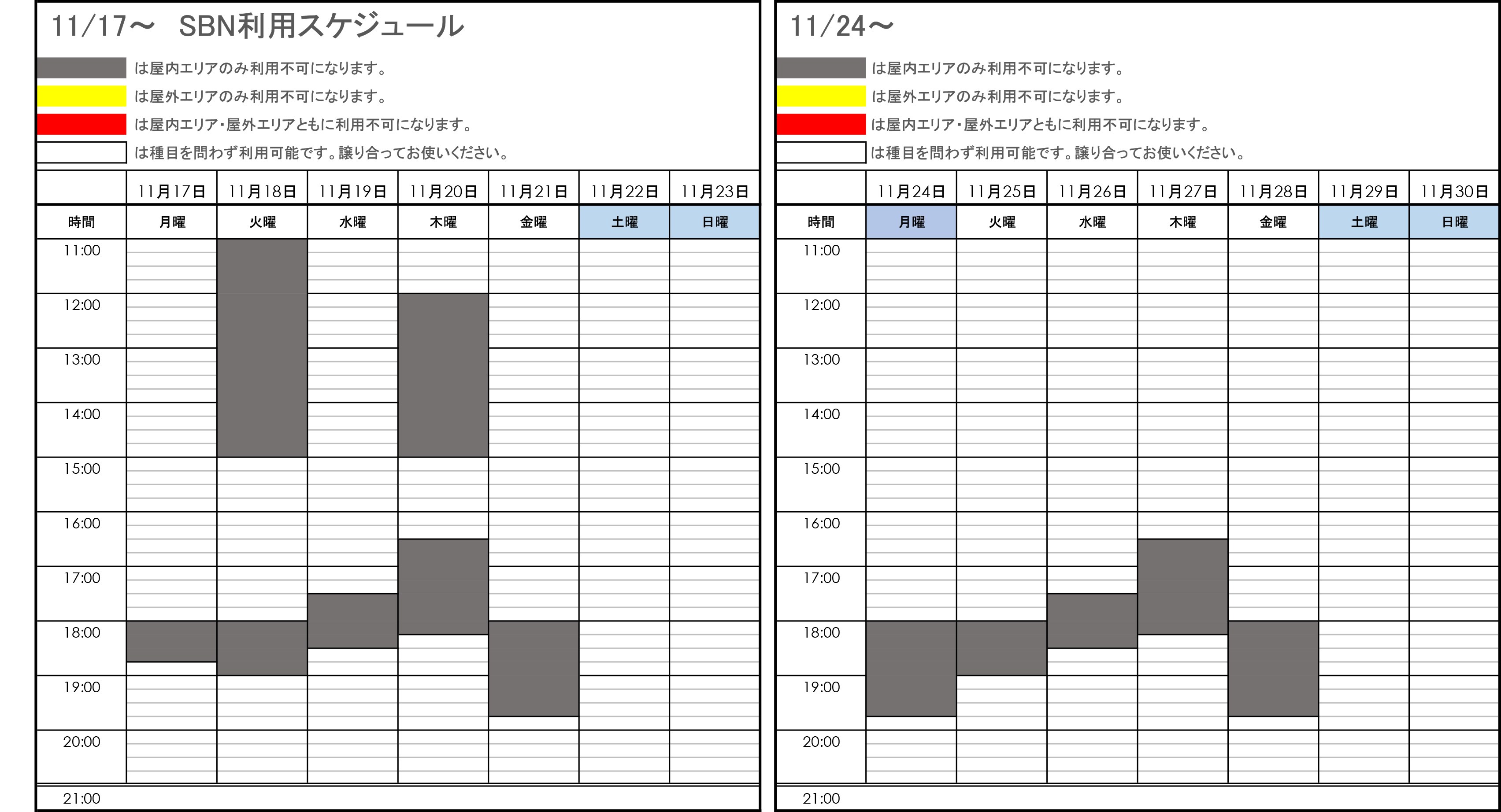 • SBNの利用可能時間は11:00~21:00です。